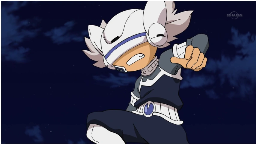 Successivamente appare con Alpha e il resto della Protocollo Omega il pomeriggio dell'arrivo di Mark alla Raimon per affrontare il ragazzo, teletrasportandosi poi nello stadio del Football Frontier.